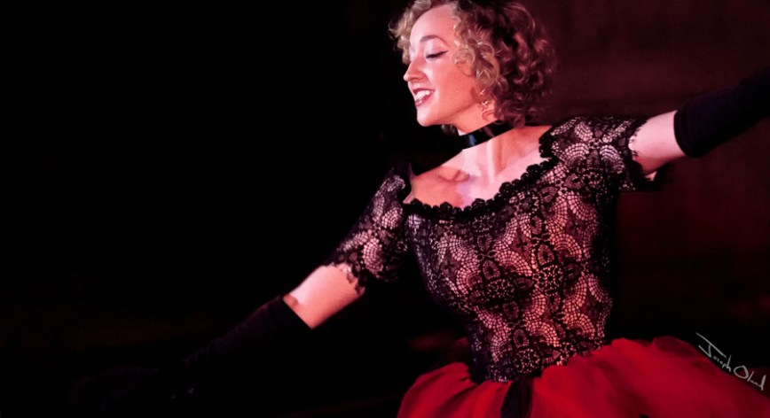 At the time, Caitlin was still studying art and living a couple hundred miles north in Prescott, Arizona, but with roots and family in Bisbee, she made the trip down and dazzled. Her first set was a tap-dance, dressed in red and black, and she caught everybody’s eye. In local theater, some presentations are humorously under-rehearsed (but usually beloved because the performers are locally known). This performance, however, was elevated beyond that modest ‘community theater’ standard. She absolutely killed it.