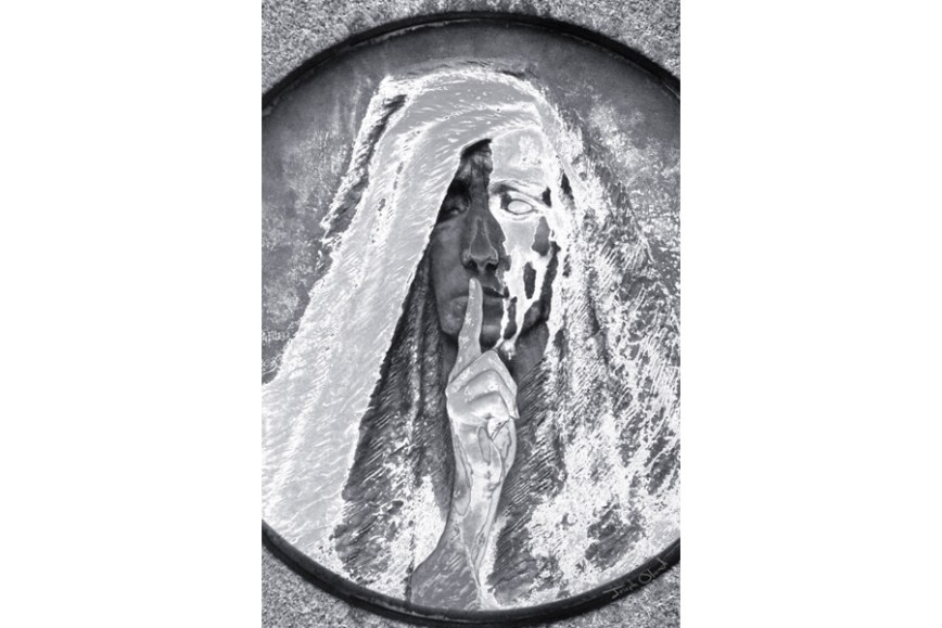 While I was in the darkroom, drawing my first prints from the Paris Cemetery rolls, somebody came in and flipped the lights on, not knowing that I was there. When this happens while a print is being lifted, it can create an effect known as ‘solarization,’ where the light short-circuits the developing process because the printing-out paper is still light sensitive. That’s why the highlight areas of this image are a neutral gray with what appear to be glowing edges.
