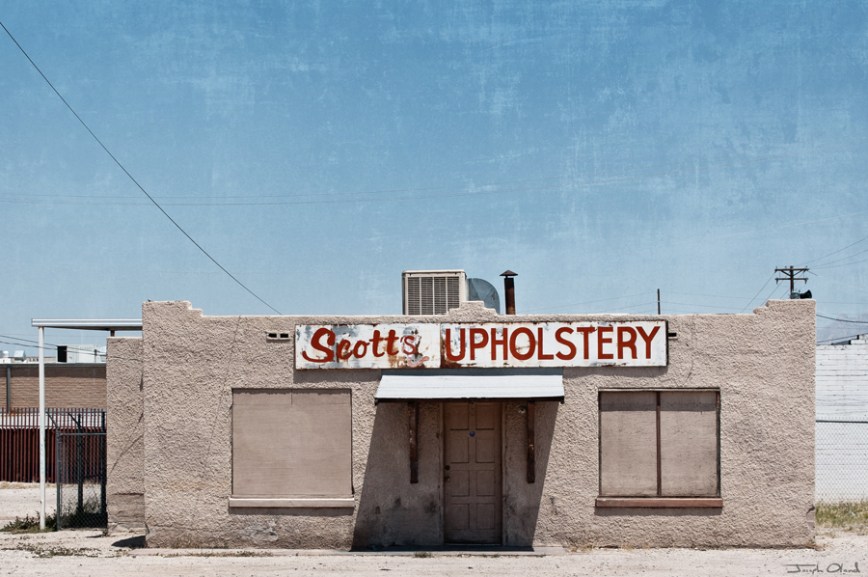 Today’s image is of an old auto repair shop – you can just barely read the old lettering on the sign. This was downtown Tucson, sometime around 2010, as the whole city crumpled under the economic downturn. Construction projects shut down and half-completed houses and apartments and businesses became graffiti magnets and squatter territories. Small businesses closed down and others trimmed their workforce to try and stay afloat – I was eventually laid off from my own job, and I spent my time in-between job interviews riding my bike around town taking photographs. Houses were abandoned and plywood replaced windows. It was a strange time.
