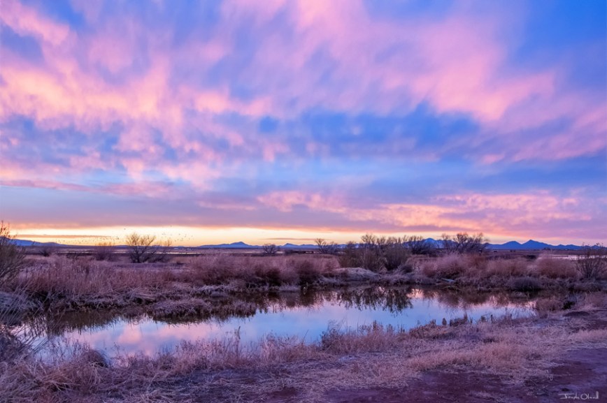 I used to go out here to photograph the birds and capture these colorful sunsets. One of the great benefits from living in a small town like Bisbee is the lack of traffic and the abundance of unspoiled land like this.